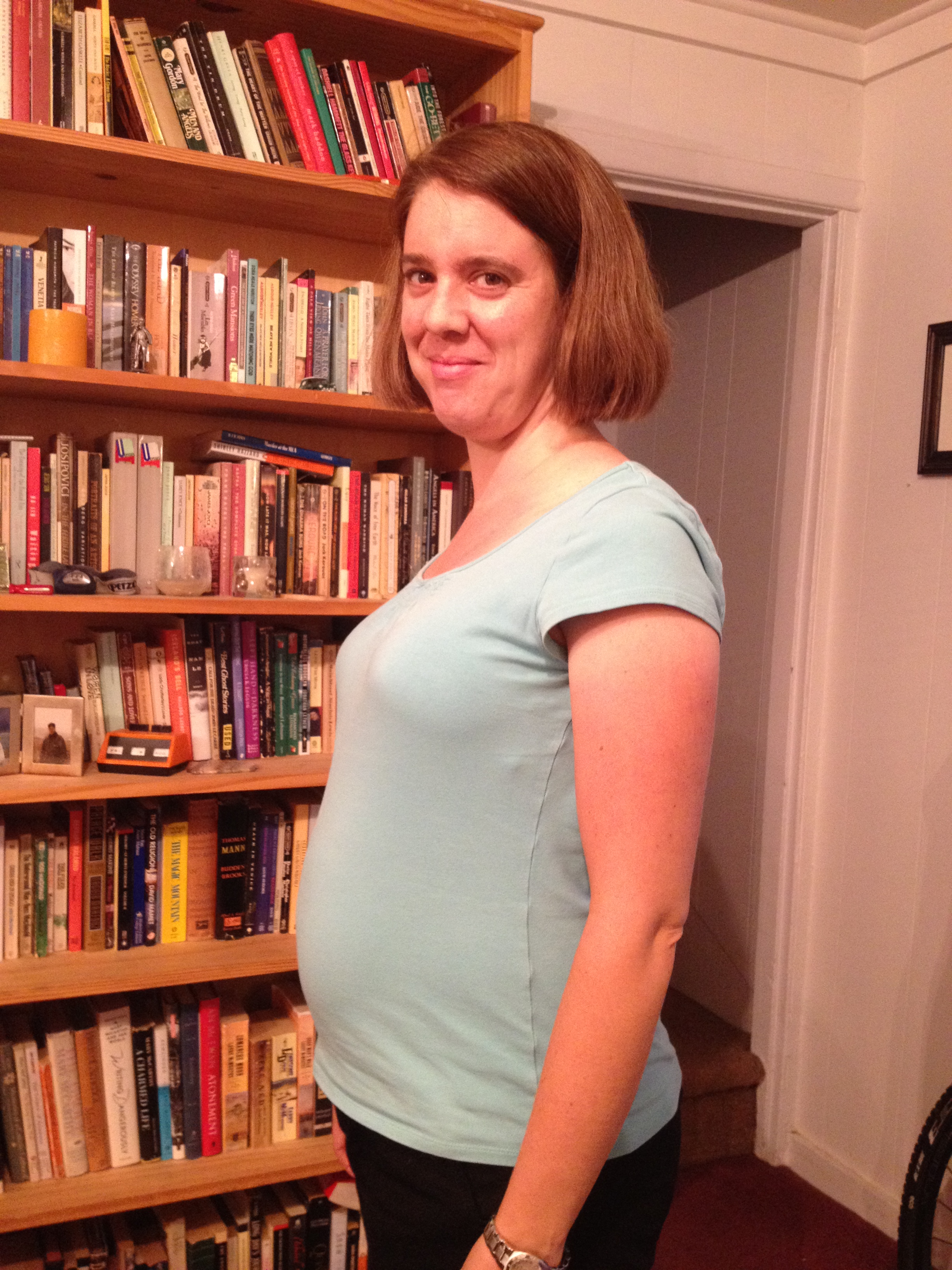 Finally, here is another pregnancy picture. I’m going to give you the 19-week one instead of the 20-week, which I wasn’t happy with. I’m past halfway now!